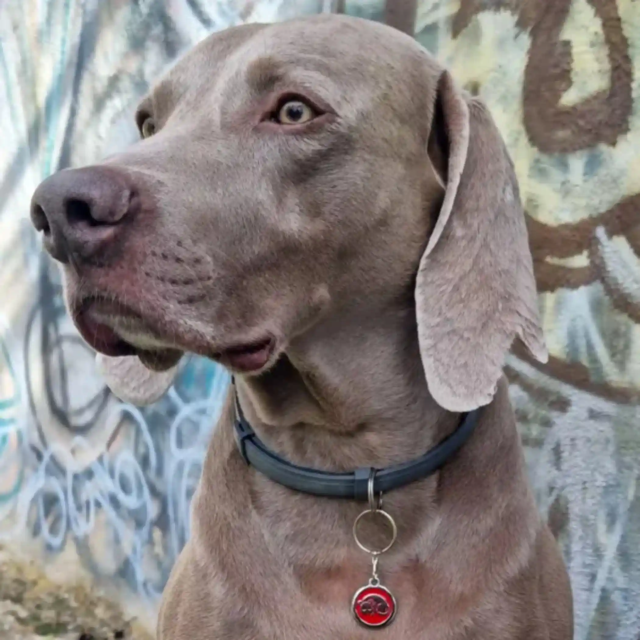 This round, long-lasting cat ID tag features a vibrant red front with a playful cat print design coated with epoxy for extra protection, and a silver back engraved with your chosen details. Durable materials and high-quality construction ensure it withstands even the most active pet adventures.