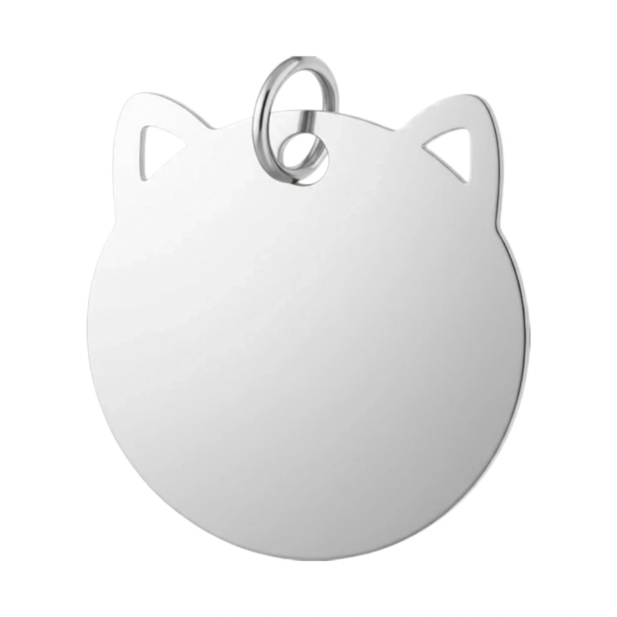 Custom silver cat head ID tag keeps your pet safe while adding style.